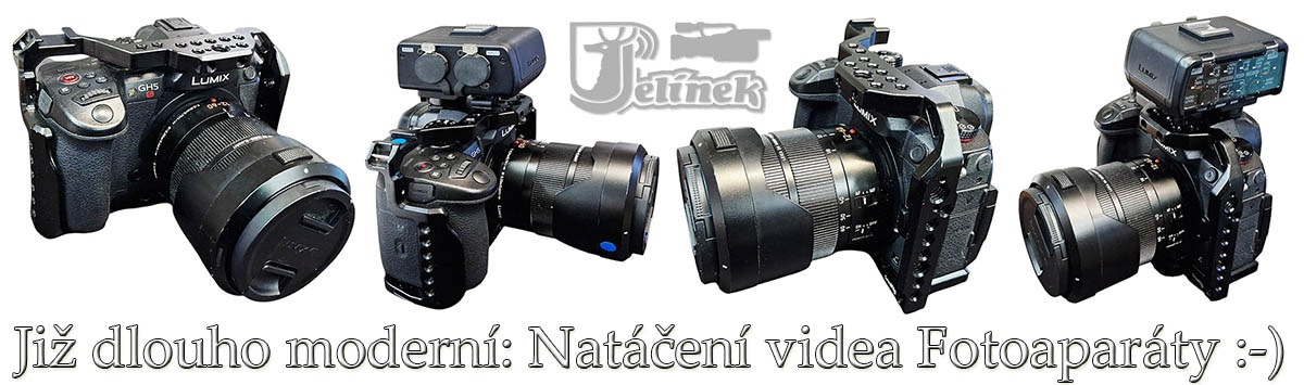 TŘETÍ HVĚZDOU nabídky budiž Panasonic DC-GH5. Naše poloprofesionální Videokamery jsou zcela výhradně od Dvojice PROFESIONÁLNÍCH Foto-kamer Panasonic GH5profesionálních TV-firem, kde o ně bylo stran servisu a láskyplné péče VŽDY dokonale postaráno. Většinou nemají „naběháno“ nadměrně provozních hodin a vždy jim funguje všechno, s čím byly vyvíjeny a vyrobeny. A Panasonic DC-GH5 a GH5S (S se právě prodala) jsou od nás navíc MIMOŘÁDNĚ osazeny klecí, XLR-adaptérem a objektivy LEICA 12-60. Komunita kameramanů legendárních WorkShopů byla v prvních ročnících takřka výhradně o provozovatelích Videokamer, ale jak běží čas, možná až třetina z nich už "přešla" na Foto-kamery typu BEZZRCADLOVEK Panasonic, Canon nebo Sony...