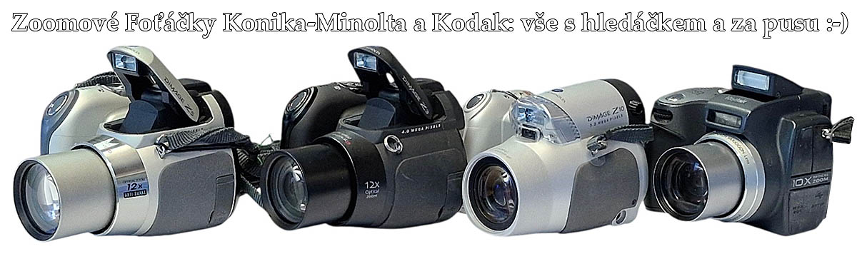 Kompakty a ultrazoomy. Pro spořivější uživatele tu je připraveno hned několik modelů Nikon a Canon s dalekonosnou KONIKA-MINOLTA a Kodak: opravdové RETRO-přístrojeoptikou a z novějších přírůstků zmiňme nádherný Panasonic FZ45, Olympus SP550uz, Sony DSC-H10 a elegantní Canon PS-SX10. Raritou jsou třistroje KONIKA-MINOLTA coby krásní Retro-fešáci DIMAGE Z10 (3MPx), novější D-Z3(4MPx) a nejnovější D-Z5 (5MPx): ale i tento bude mít DVACET roků od aktivní nabídky. Všichni „mušketýři“ mají hledáček EVF a solidní 12x ZOOM; a v neposlední řadě jsou napájeny nejdostupnějšími bateriemi AA (při koupi nová sada zdarma). Z jiné skupiny vyhledávaných aparátů jsou kinofilmové stroje, kde přibyl čerstvě sovětský bestseler SMENA nebo ikonické automaty OLYMPUS: veliký IS21 a maličký MJU Zoom 80. K obdarování sběratele do VIP-vitrínky poslouží historické měcháčky nebo praotec POLAROID-u M95…