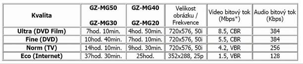 Následující model nese označení GZ-MG37 a výrobce do něj vsadil pevný disk s vyšší 30GB kapacitou, takže v nejlepším režimu záznamu nazvaném ULTRAFINE (extra jemný) se na disk vejde přibližně 7 hodin videozáznamu, v režimu úsporném pak stačí kapacita disku na 37 hodin a 30 minut. Další, poslední a nejvyšší jednočipový model dodávaný na český trh nese označení GZ-MG77. Kamera je vybavena lepším snímacím CCD-čipem s úhlopříčkou 1/3,9" a rozlišením 2,18MPx, což jistě výrazně vylepší možnost fotografování. Navíc je stroj obohacen o vestavěný blesk, takže je logicky méně problémové i focení za horších světelných podmínek. Maximální rozlišení na fotce je pak 1.632 x 1.224. Díky většímu CCD-snímači se podstatně snížilo optické přiblížení z 32násobku u levnějších kolegyň na pouhý desetinásobek a blesk zabral místo vestavěným LED diodám. Ty by daná kamera neměla do jisté míry potřebovat, protože se světelnost objektivu zlepšila z F2,0 až na údaj F1,2 v nejširším ohnisku…
