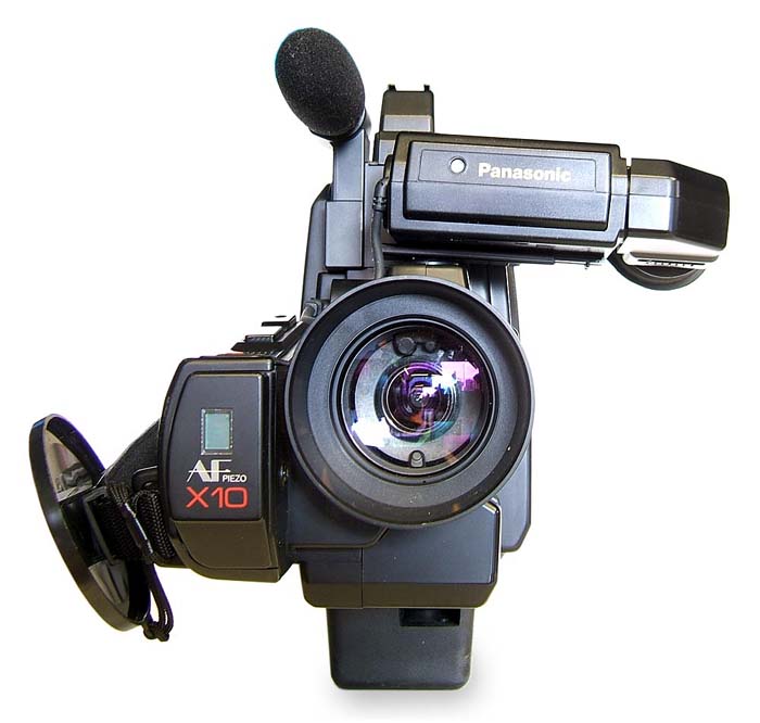 Japonský MATSUSHITA - respektive jeho (kdožvíproč odnož) Panasonic - se od počátku podílel na vývoji a výrobě maloobchodních videokamer velmi aktivně. Přestože autor tohoto textu nemá k dispozici potřebné detaily pro echt dokonalé informace o problematice, (snad) čtenáři naznačí alespoň něco. Panasonic se totiž připojil ve druhé polovině 70. let ke kolegovi Victorovi (JVC) a už od roku 1976 s ním táhnul (tehdy úspěšnou) loď půlpalcové pásky VHS. A přestože opravdovou historii videokamer VHS/S-VHS z prvopočátků jejich éry nemáme zmapovánu nijak detailně, můžeme nabídnout obrázky a data některých strojů z oné zlaté doby VHS a Super-VHS, jež je mnohými nadšenci prodlužována na sportovních kláních nebo společenských akcích dodnes. Obří ramenní mašina NV-MS1 byla jedním ze symbolů začátku 90. let, alespoň co se vnímavosti tehdejších profíků týkalo. Svým CCD-snímačem o velikosti 1/2" a počtu 420.000 bodů by mohla leckteré dnešní krasavici konkurovat, ale také pokrok v kvalitě snímacích senzorů by pochopitelně měl na pomyslné misce vah své body (výrobci přece nespí :-D)…