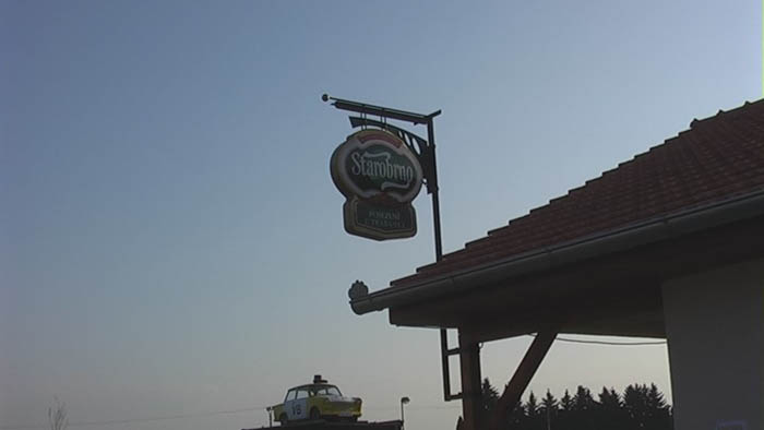 Galerie Videosnímků a fotografií. Myslím sice, že zkušenějším v našem oboru tento odstavec příliš nenapoví - a úplné laiky možná správně nenakopne - ale pusme se do toho. Prvním Videosnímkem (opakuji: označení užíváme pro statické obrázky vytažené z videa) je oblíbený Trabant ze stejnojmenného občerstvení na brněnské cyklostezce, druhým pak pohled od výčepu (takhle do dáli na stromy vzadu odtud vidí GS320). Třetí ukázka dokazuje, že jsem si název nevymyslel (a odtud jsem si to přitáhl) a čtvrtý snímek považujme za kuriozitu: brněnští m칝áci si museli i se státem svěřeným autíčkem kapku odpočinout (sejmul jsem je takhle na dálku :-D). Ani Fotografie jsem nehledal - mimochodem předevčírem v krásné teplé neděli - daleko: pátým obrázkem v sadě je rodinný výlet budoucnosti (nezmění-li se politici :-D), následuje surový detail bicyklu (bráno odsud); znovu Trabi - tentokrát na 3M-kvalitu - a impozantní hrad, kvůli kterému jsem slezl z kola na tomto ponurém místě vedle cyklostezky. Doplním ještě elegantní izolátor na plné TELE a jdu tu poudačku pomalu zakončit…