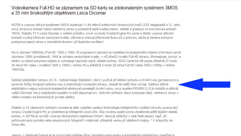Technická data videokamery Panasonic HDC-SD700: na Webu čs. zastoupení...