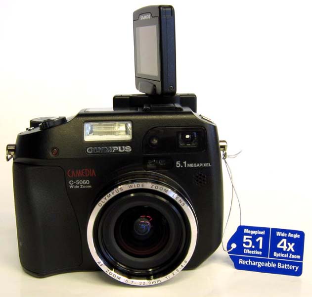 Skutečně zajímavou novinkou mezi digitálními „pětimegáči“ je již pár měsíců Olympus 5060, nástupce vcelku velmi oblíbeného Olympusu C-5050. Základní údaj, zajímající hned na úvod asi každého fotografa nejvíce, je 5-ti megový čip (5,13MPx) se známou a velkou úhlopříčkou 1/1,8“ (tj. 14,1mm). Robustní tělo je poměrně dosti podobné staršímu bratříčkovi 5050: nalezneme zde na první pohled jen malé změny. Odlišné umístění tlačítek korekce expozice a blesku je napravo od výklopného LCD panelu, který se na rozdíl od typu 5050 vyklápí vertikálně a poté kolem své osy dokonce o 270 stupňů. Variabilnost výklopného LCD-panelu by měla být dobře patrna i z obrázků. Hlavní vypínač ON/OFF je umístěn pod otočným voličem funkcí a přehrávání, před ním jsou tlačítka pro samospouš a další volby; AF, AE a ZOOM zůstaly na stejných místech - ovládacích prvků je zde opravdu hodně a chvíli je potřeba si na jejich bezchybné užívání zvykat, poté se však celé ovládání masivního stroje Olympus 5060 stává každému technickému fandovi hračkou…