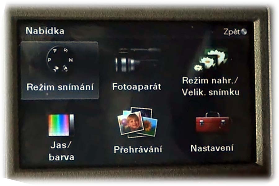 VG10 má o facku líbivější grafiku, než jakou (tj. kapku nepřehlednou) měly mnohé vyspělé modely této značky, ale s jaksi nedomyšlenou logikou ovládání kamero-foto-hybridu. Ikonky jednotlivých 6ti skupin povelů jsou zcela přepracovány, ale i pro poučené laiky (za jaké považuji třeba náš kolektiv :-D) jsou docela na zaučení, což považujme za daň z novátorství. Výbava vymožeností této hybridní krásky JE VELMI DISKUTABILNÍ, jakoby se celý stroj vyčleňoval mimo poloprofesionální segment. Jediná videospouš pro pravý palec je nepochopitelným rozporem vůči osazení horního madla k přenášení a spodním náhledům, podobně jako jediná fotospouš nebo absence u jiných typů samozřejmých manuálních možností. Fotoaparátu chybí vestavěný blesk s alespoň nějakým rozumným směrným číslem a možná i druhá fotospouš. Videokameře chybí bodová ostření i měření (oželel bych je), ale oproti levnějším kamerám - beru-li jako srovnání zhruba polovinu ceny - tu absentují třebas indikace přepalů (pruhovaný koník Zebra), asistent ručního ostření; a pro mnohé nepostradatelná možnost řízení úrovně mikrofonů i pár fines pro ergonomii stroje: druhá videospouš na horním madle a možná i na okraji LCD. Ostatními excesy se proberu v závěrečných odstavcích, pokračujme v popisu ztepilé černovlásky…