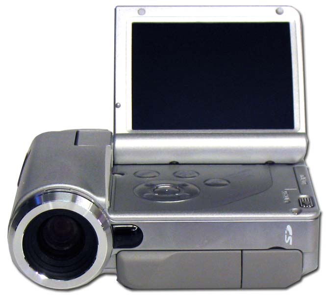 SD-kamery. Jeden z hlavních vůdců světového pokroku Panasonic se pouští už v létě r. 2002 do experimentu, jehož (ne)úspěch tehdy určitě neodhadl nikdo. Tehdejší MPEG4-miniatura SV-AV10 sice zdaleka nepředstavovala plnohodnotnou věc, jež by zasloužila známé pojmenování videokamera, ale předznamenala projekt, ke kterému se připojily i různí počítačoví anebo úplně tzv. neznačkoví producenti s méně či více výkonnými libůstkami. Jejich zatím jediný plnohodnotný přístroj - co se komprimátu MPEG2 týká - byl představen už ve druhé polovině roku 2003 a mj. i na čs. stránkách jej Panasonic prezentuje dodnes. Jak vyplynulo z naší někdejší podzimní recenze (odkaz ob řádek níže) této miniatury, věcička je svými video-výkony v zásadě zcela srovnatelná s pozdější velkou ideou JVC Everio (viz dále) a jen zástupci firmy Panasonic vědí, jak mnoho SV-AV100 sklízela či nesklízela (prodejních) úspěchů a proč dnes nemá žádné pokračování. Zahlédnutí tohoto modelu kdekoli na veřejnosti je asi podobně vzácným jevem, jako když nějaký kameraman drží libovolnou mašinku experimentálního formátu micro-MV…