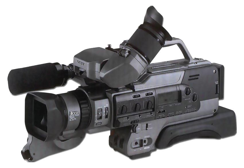 Pokračujeme? No, něco bychom mohli ještě přidat, což!? Co takhle jedna z nejmasivnějších mašin, jež byly kdy dostupné v maloobchodní síti: tříčipový stroj Sony DCR-VX9000. Pravděpodobně mnohem známější je tento „obr na rameno“ profesionálnějším uživatelům pod označením DSR-200. Ale dnešní rozjímání je určeno pro amatéry a z tohoto pohledu tedy ukazujme: krásný a veliký stroj na tzv. velké digitální videokazety DV má 3CCD-snímače s 470.000 body na každém. Impozantní strojovna má 3,4kg a i její rozměry dokreslují výjimečnost: 216 x 225 x 466 mm! Posuvná ramenní opěrka je dobrým základem pro stabilitu přístroje na rameni kameramana. Obří pouzdro s třemi akumulátory se zavěšuje dozadu, v plné výzbroji odpovídá třem AKU NP-F950 a stojí až kolem 30 tisíc korun! Však také napájí mašinu s příkonem téměř 12Wattů. Co k takové výjimečnosti dodat? Snad jen to, že v katalogové "maloobchodní" nabídce firmy Sony chybí od roku 2001 a její pořizovací cena je zhruba až kolem čtvrt milionu…