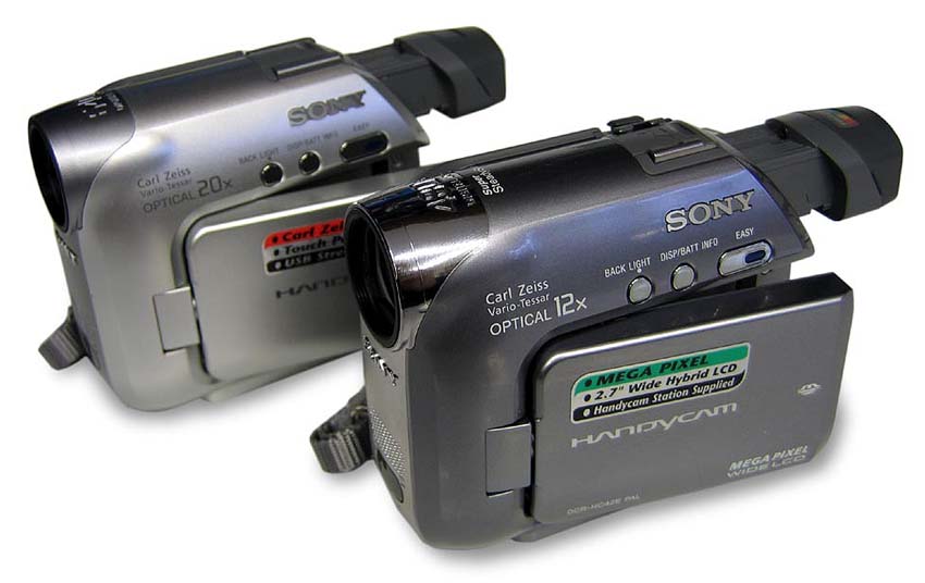 Přejděme plynule do sféry zájmu mini-DV. Když v roce 1995 (ale vývojářsky určitě dříve) stál elektronický Big-vůdce u pomyslné kolébky platformy úzké pásky mini-DV, pravděpodobně ani hlavní tvůrci tohoto fenoménu netušili, jak rychle (a celoplošně) se prosadí. Historicky první videokamery světa tohoto formátu - tj. modely DCR-VX1000 a VX700 - stály tehdy velké sumy peněz a zejména tříčip VX1000 slouží mnohým točičům dodnes. Po zvláštní téměř dvouleté přestávce ve vývoji novinek byl veliký Sony také zřejmě vůbec prvním producentem, který přinesl světu maloobchodně dostupných videokamer myšlenku dlaňovky (s držením "na výšku"): šlo o model DCR-PC7 z roku 1997. Následující rok 1998 byl pak asi i posledním z tzv. zlaté éry velevyspělých i velmi drahých přístrojů systému Hi8: tehdy spatřily světlo světa takové mašiny, jako byly masivní CCD-TR3200 nebo CCD-TRV95. Ale nenuďme čtenáře (nikoli nostalgickým) vzpomínáním a pokusme se o slibovaný náznak přehledu současné produkce videokamer mini-DV od firmy Sony, začněme zespodu a s výkonem i cenou stoupejme spolu se sortimentem do výšky…